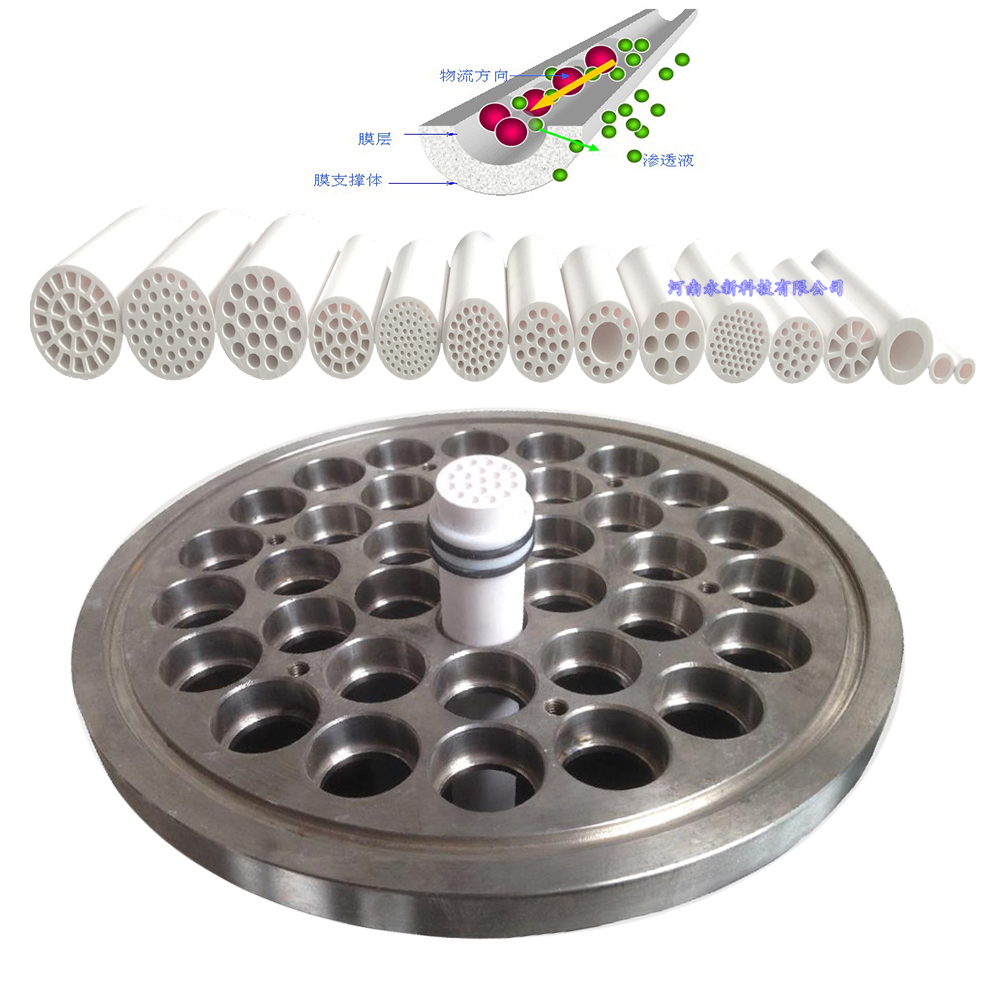 陶瓷膜根据在一定的膜孔径范围内,渗透的物质分子直径不同则渗透率不同,以膜两侧的压力差为驱动力,膜为过滤介质,在一定压力作用下,当料液流过膜表面时,只允许水、无机盐、小分子物质透过膜,而阻止水中的悬浮物、胶和微生物等大分子物质通过。陶瓷膜具有分离效率高、效果稳定、化学稳定性好、耐酸碱、耐有机溶剂、耐高温、抗污染、机械强度高、再生性能好、分离过程简单、能耗低、操作维护简便、使用寿命长等优势,已经成功应用于钛白粉、盐水精制、食品、饮料、发酵、精细化工等众多领域,可用于工艺过程中的分离、澄清、纯化、浓缩、除盐等。